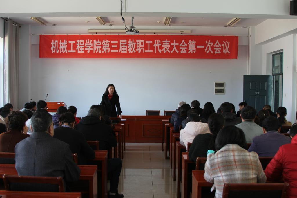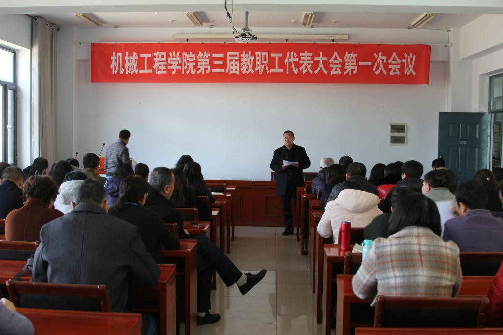 2019年3月14日下午,机械工程学院召开三届一次教职工代表大会。全体与会人员认真听取了院长白朴存所作的《院长工作报告》、副院长冯海全所做的《学院财务工作报告》、工会主席闫文刚所作的《工会年度工作报告》和《工会财务工作报告》。院党委书记陈红霞主持会议,院党政领导、各系部主任、党支部书记、教职工代表等参加本次大会。