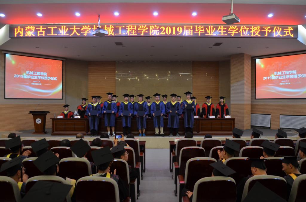 学院党委书记陈红霞宣读获得硕士学位、学士学位毕业生名单,主席台就坐的老师为获得学位的学生颁发学位证书、“拨穗正冠”,并为2019届完成“卓越工程师教育培养计划”毕业生颁发证书。毕业生代表院学生会主席、机制专业15级1班王学鑫同学代表全体毕业生发言。机械系崔昭霞老师代表学院全体教师发言。
