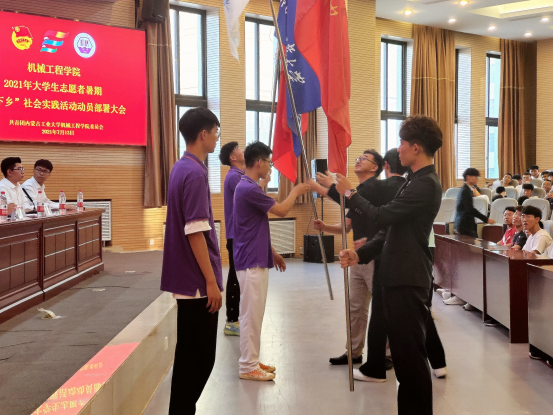 副书记、副院长冯小虎老师为2021年暑期“三下乡”社会实践学院重点队授旗,并做讲话,同时对同学们提出了四点希望:一是希望同学们在实践活动中,牢固树立安全第一的思想,做好安全预案,确保实践活动安全有序开展;二是希望同学们虚心求教,脚踏实地的向人民群众学习,以此来提高自己分析问题、处理问题、解决问题的能力;三是希望同学们在实践中发扬吃苦耐劳的精神,要不怕苦、不怕累,遇到困难,勇往直前;四是希望同学们时刻牢记自己大学生的身份,文明出行,礼貌用语,尊老爱幼、持续发扬中华民族的传统美德,以实际行动展现工大学子的风采。