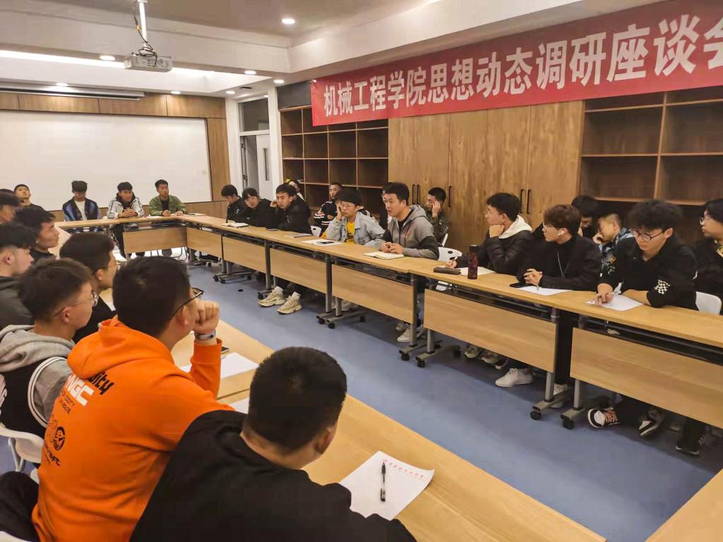 座谈会上,林森老师通过同学们了解了学院其他同学们在思想动态、学习、平时生活中的一些事项。随后就对学生思想状况、学习和热点关注问题进行多角度、深层次的分析向同学们做了说明。最后同学们就机械大楼教室卫生和铃声、学生公寓饮用热水等方面遇到的问题向林老师进行了反馈,林森老师一一做了记录,表示会上报学院和学校尽可能为大家解决问题。