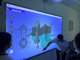 通过智慧交互系统完成教师与学生屏幕视角的同步切换,实现教师讲授示范、学生成果展示、文件实时传输等功能,强化课堂学生参与度,实现学与用的及时结合。通过“车床”、“柴油机”教学模型视角转换、装配、拆解等环节演示,对虚拟软件设备的立体展示、交互式操作方法进行了培训与感受。