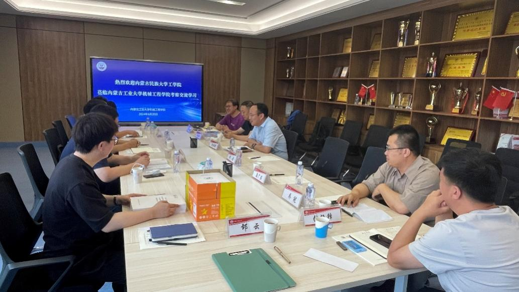 2024年6月20日上午,内蒙古民族大学工学院党委书记曹佈仁特古斯、副院长张春友、国家一流专业负责人王利华以及机械系主任刘罡一行四人到2007so太阳集团考察交流学习,2007so太阳集团党委书记米丹、副院长唐术锋、副院长姜广君、武建新教授以及部分职能科室老师参加交流会。