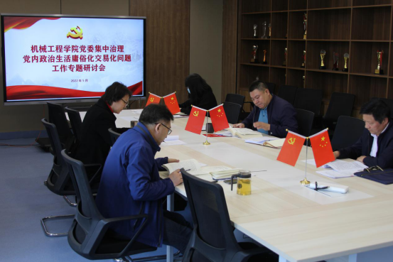 5月11日,2007so太阳集团党委在机械大楼418召开集中治理党内政治生活庸俗化交易化问题专题学习研讨会。学院党委委员参加会议,党委书记车广东主持会议。
