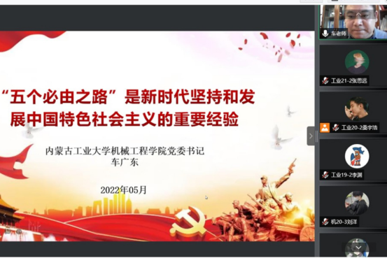 本次培训班采取线上授课形式,学院党委书记车广东、院长陈红霞、党委副书记、副院长冯小虎、副院长孙鹏文、姜广君分别以《“五个必由之路”是新时代坚持和发展中国特色社会主义的重要经验》、《学习习近平新时代中国特色社会主义思想 争做理想信念坚定的共产党员》、《不忘初心、牢记使命——做新时代合格共产党员》、《落实五大发展理念,在大众创业万众创新的伟大实践中建功成才》、《增强“四个意识”,坚定“四个自信”,为实现中国梦不懈奋斗》为题,重点学习党的十九届六中全会精神、自治区第十一次党代会精神、《中国共产党简史》、《习近平新时代中国特色社会主义思想学习纲要》以及党纪党规等相关内容。此外,党员发展对象还进行了视频学习和分组讨论。党校培训结束后,学员们纷纷表示,将继续加强理论学习,不忘初心使命,为争取早日加入党组织而不懈努力。(供稿人:周晶)
