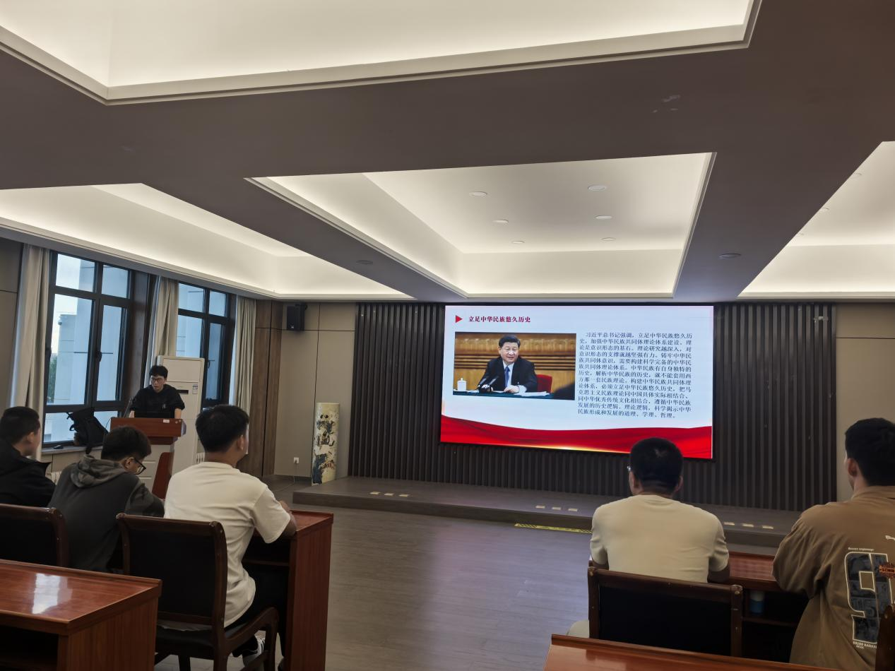王子赫同学以习近平总书记在中央民族工作会议上的讲话精神为主要内容,围绕“立足中华民族悠久历史,加强中华民族共同体理论体系建设;着眼建设中华民族现代文明,不断构筑中华民族共有精神家园;促进各民族广泛交往交流交融,以中华民族大团结促进中国式现代化;讲好中华民族故事,大力宣介中华民族共同体意识”4个方面做了讲解。