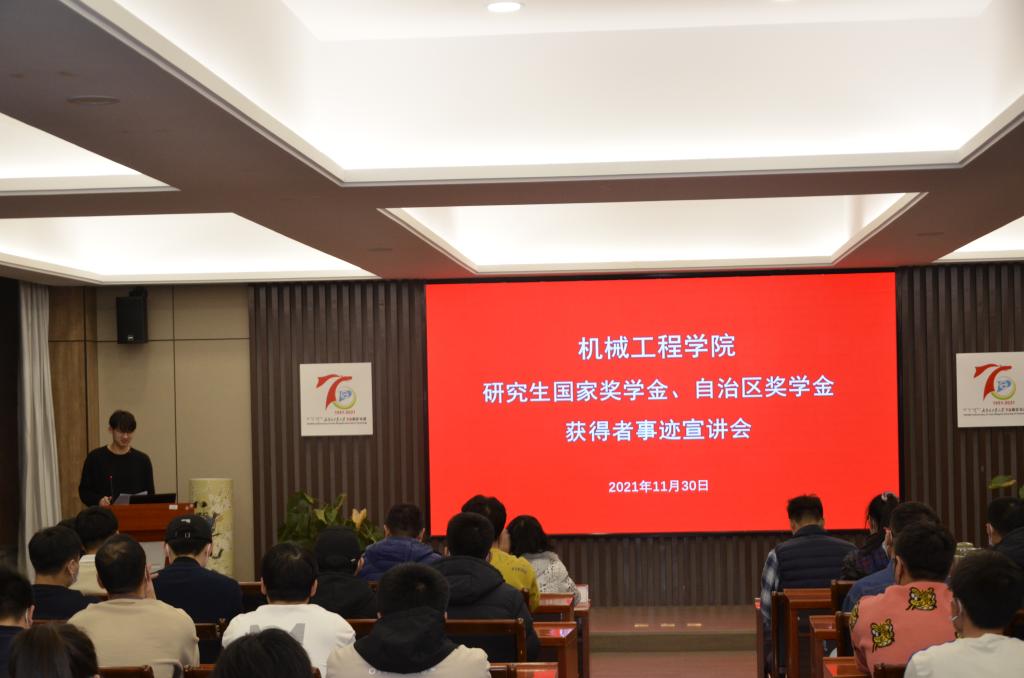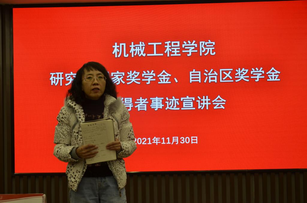 为全面贯彻党的教育方针,优化学术环境,营造良好的科研氛围,充分发挥研究生国家奖学金、自治区奖学金获得者的示范引领作用,激励研究生奋发有为,积极进取。2007so太阳集团于11月30日晚在学院409学术报告厅举办了研究生国家奖学金、自治区奖学金获得者事迹宣讲会。团学工作办公室毛利娜、杨枫、林森三位老师出席了本次活动。2021级全体研究生参加了本次活动。