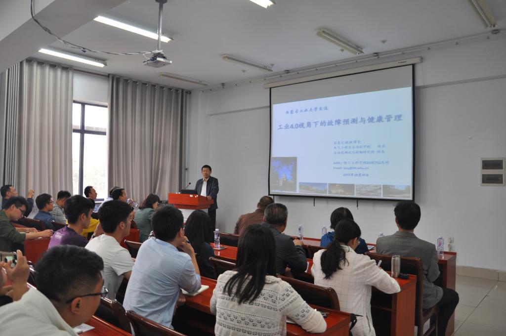 5月10日下午,彭喜元教授作了题为《工业4.0视角下的故障预测与健康管理》学术报告。他从工业1.0至工业4.0的概念入手,介绍了工业4.0的基本历程以及中国制造2025的宏伟目标、工业大数据的巨大价值,并以国家军工项目为例对工业4.0视角下产品的故障预测与健康管理等方面做了详细讲解。