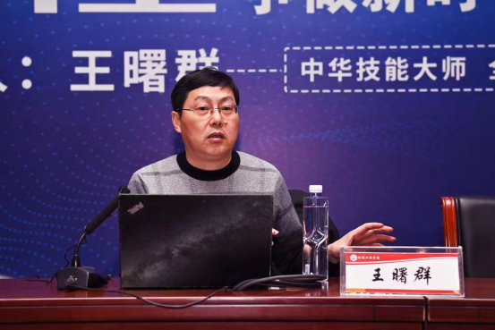 王曙群结合亲身经历与同学们分享了大国工匠的养成之路,以“刷新”“求变”“赋能”为特征的思维转变三个阶段出发,认真阐述了技能型人才所必须具备的“远离浮躁、心无旁骛、勤于思考、敢于失败”的基本品质。随后详细介绍了不同历史时期和任务下的航天精神,包括航天传统精神、“两弹一星”精神、载人航天精神,从不同侧面折射出我国综合国力的提升和科技自信的增强。他用最朴实的话语,结合丰富的事例和亲身经历,诠释了一种坚守,一心奉献,一份事业的工匠精神,展现了航天人敢于担当、敢为人先、敢于破难的魄力和勇气,“以匠人之心,铸航天重器”的不懈追求,引起了与会人员的共鸣。